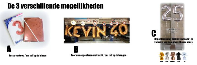 | A) Foliecijfer/letter 30cm hoog / losse aankoop (niet opgeblazen) | € 2,70/st. |