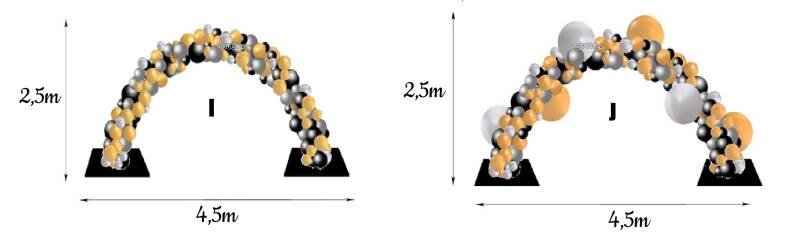 Organic boog op 2 steunen 2,5m hoog / 4,5 meter breed + 6 grote ballonnen (7,5 lopende meters)