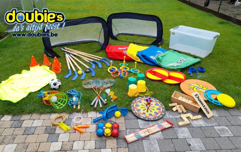 *4 grote springzakken + blauwe start- en stoplijn + 4 prik-piketjes