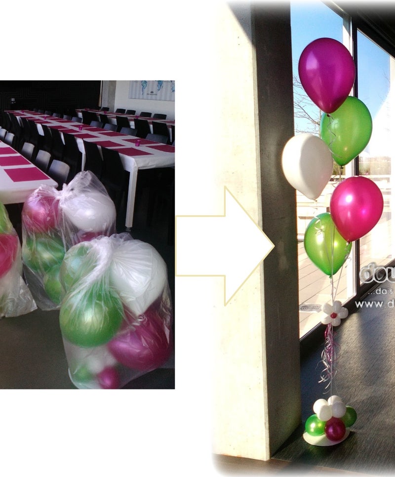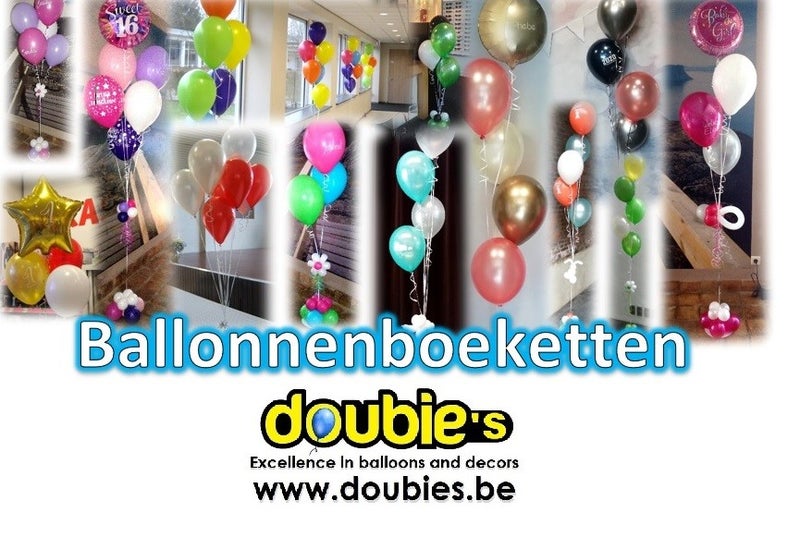 Omdat ballonnenboeketten met meerdere ballonnen in 1001 verschillende samenstellingen kunnen uitgevoerd worden, kan u ze volledige samenstellen naar wens. Alle kleuren, vormen, opdrukken of tekst. Ook het soort gewicht, de hoogte en afwerking is zelf te kiezen.